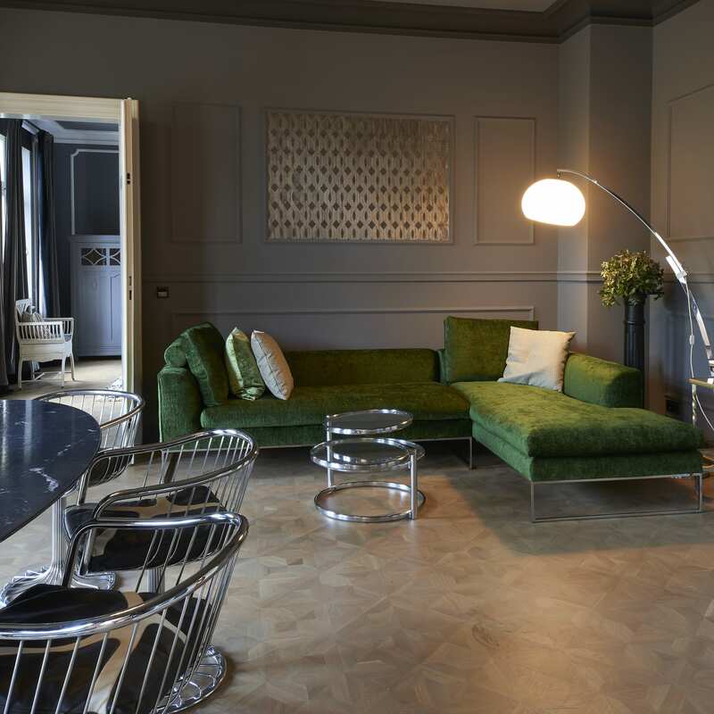 Das Apartment ist mit 160 m² großzügig gestaltet. Die voll ausgestattete Küche lässt keine Wünsche offen und bietet alle Möglichkeiten, mit der ganzen Familie zu kochen. Das prachtvolle Bad bietet zeitgenössischen Luxus und ausgesuchte Vintage-Möbel erzählen die Geschichten vergangener Zeiten.