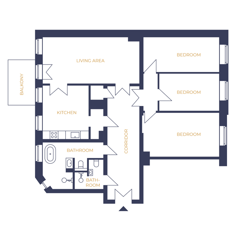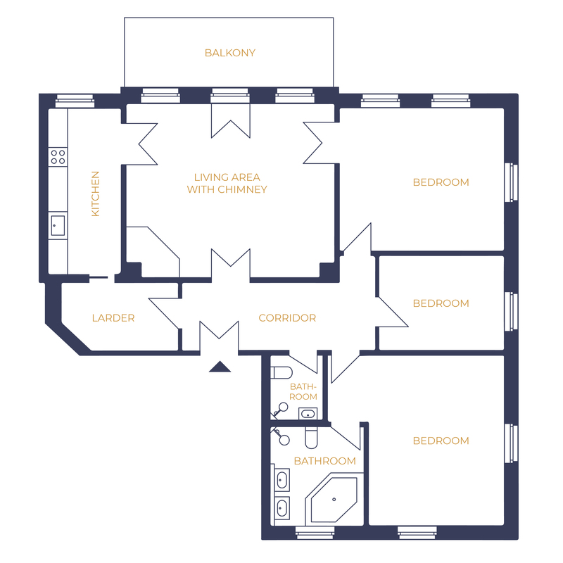 The apartment is generously designed with 125 m² and offers – like all CORA APARTMENTS – a fully equipped kitchen. The apartment has 3 bedrooms and 2 bathrooms. All rooms are unique with a mix of old and new interiors. The living and dining area is spacious, and a small balcony completes the comfort of staying at CORA C.